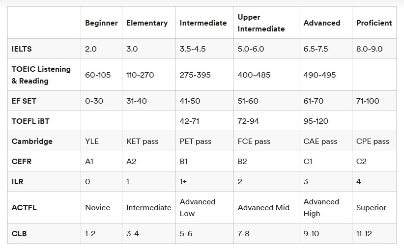 Kemampuan bahasa Inggris dibagi menjadi 6 level: